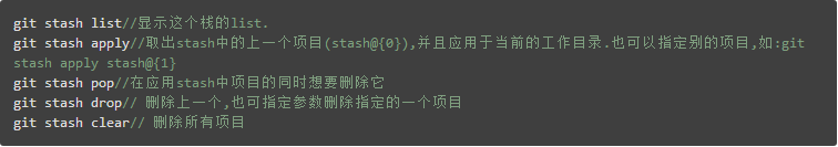 git stash将会把当前目录和index中的所有改动(但不包括未track的文件)压入一个栈,然后留给你一个clean的工作状态,即处于上一次最新提交处