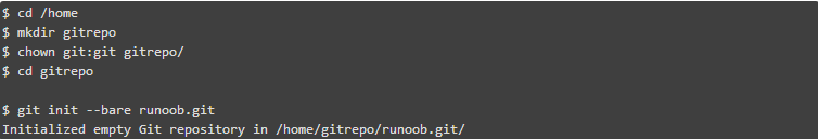 以上命令Git创建一个空仓库,服务器上的Git仓库通常都以.git结尾。然后,把仓库所属用户改为git: