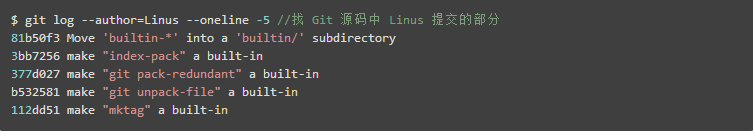 如果只想查找指定用户的提交日志可以使用命令:git log --author ,eg.: