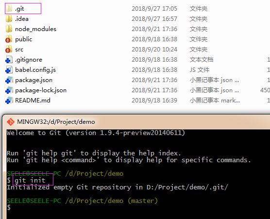 创建完后会在项目中生成“ .git ”这个子目录。 这就是你的 Git 仓库了,所有有关你的此项目的快照数据都存放在这里,eg: