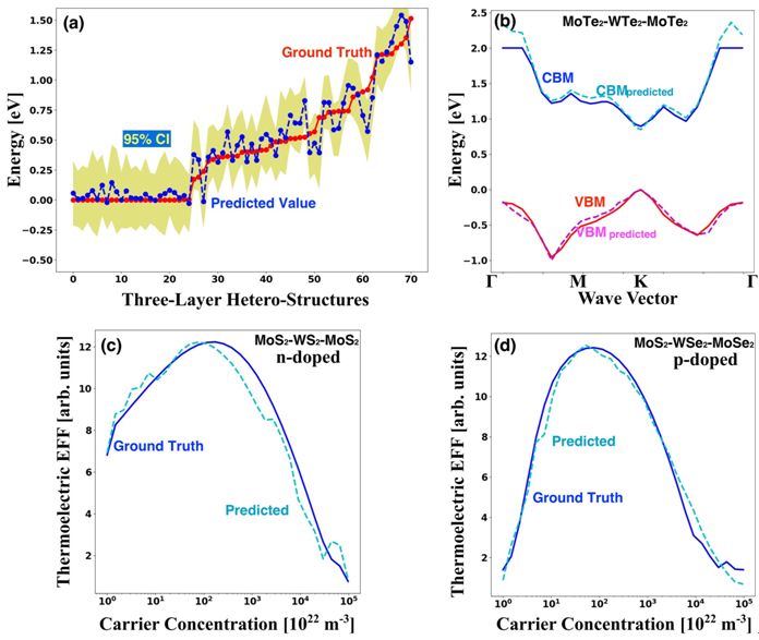 由过渡金属二硫属化合物单层垂直堆叠而成的异质结在光电和热电器件领域拥有巨大的应用潜力。发现用于特定领域的最优层状材料,需要先估算关键的材料特性,例如电子能带结构和热输运系数。然而,通过严格从头算方法搜索整个材料结构空间来筛选材料特性大大超过了目前计算资源的限制。此外,材料特性函数对其结构的依赖性通常很复杂,在没有收集大量数据的情况下,难以使用简单的统计程序开展预测。
