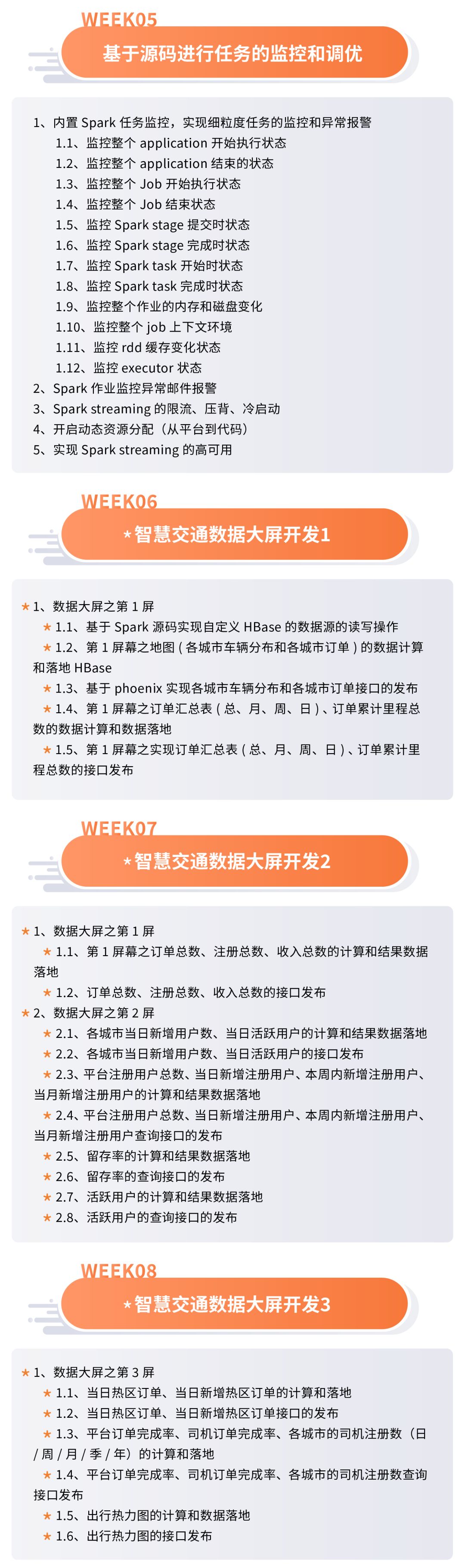 ps:课程将严格遵守滴滴出行的数据安全标准,本培养计划中订单、车辆分布和收入总数等数据均采用模拟数据集实现,此类功能点在大纲中用*标注。