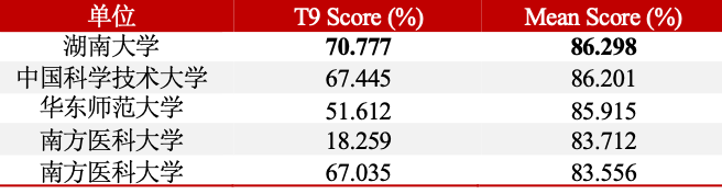 同赛道排名前五队伍的T9 Score及Mean Score