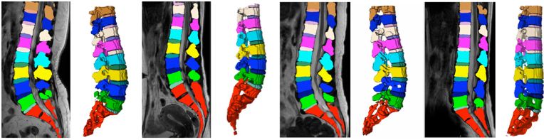 参赛方案在三维磁共振图像中脊柱结构多类别分割结果示例
