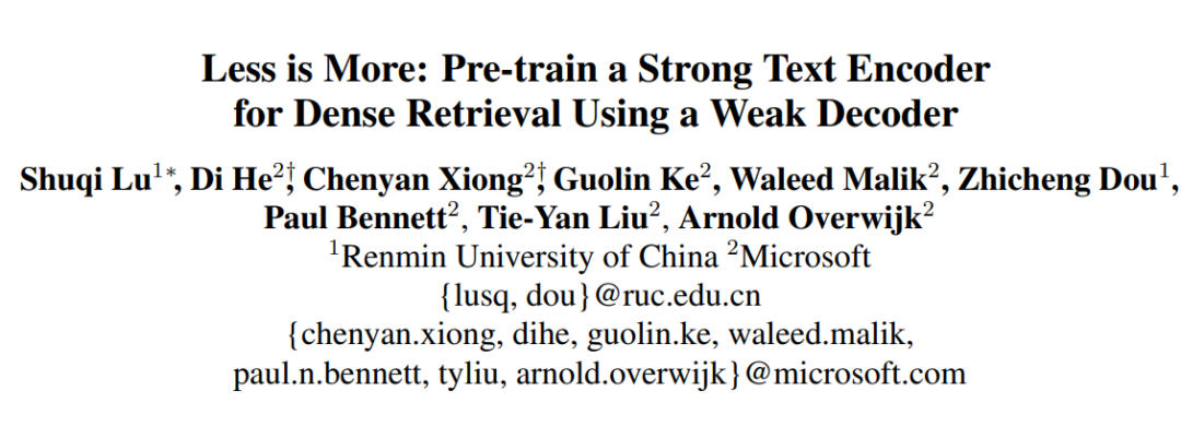 基于自动编码器的语言模型在 Dense Retrieval(DR)中受到越来越多的关注,因为其训练编码器输出高质量的 embedding,从而可以用于对输入文本进行重构。然而,在本文作者发现,低重构损失的自动编码器语言模型可能会利用语言模式走捷径,强大的解码器自身可能学习到一定的语言范式,因此解码效果越好,并不一定意味着生成的表示越好。