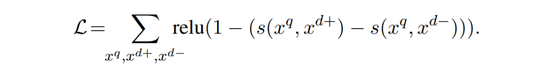 微调 Siamese/Dual 编码器:在 Siamese 架构中对 DR 任务进行 SEED-Encoder 的微调与其他预训练模型相同。使用三元组损失完成带标签的句子对匹配任务的微调:
