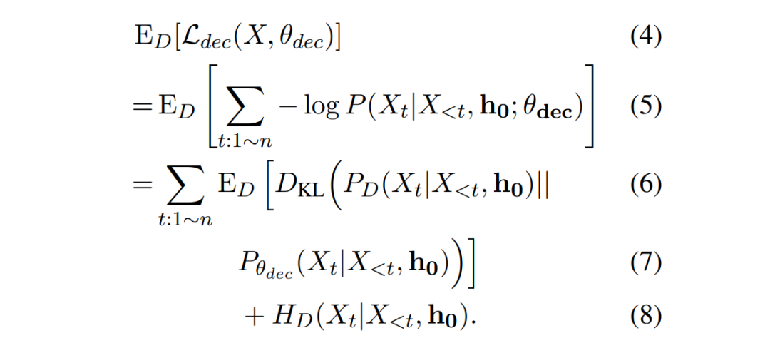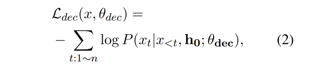 是解码器生成的序列分布。简单起见,假设所有的序列长度都是 n。重建损失函数可以改写为: