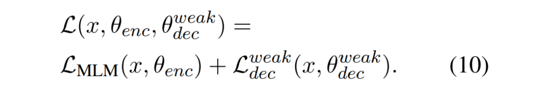 SEED-Encoder 的损失函数结合了编码器的 MLM 损失和解码器的重构损失