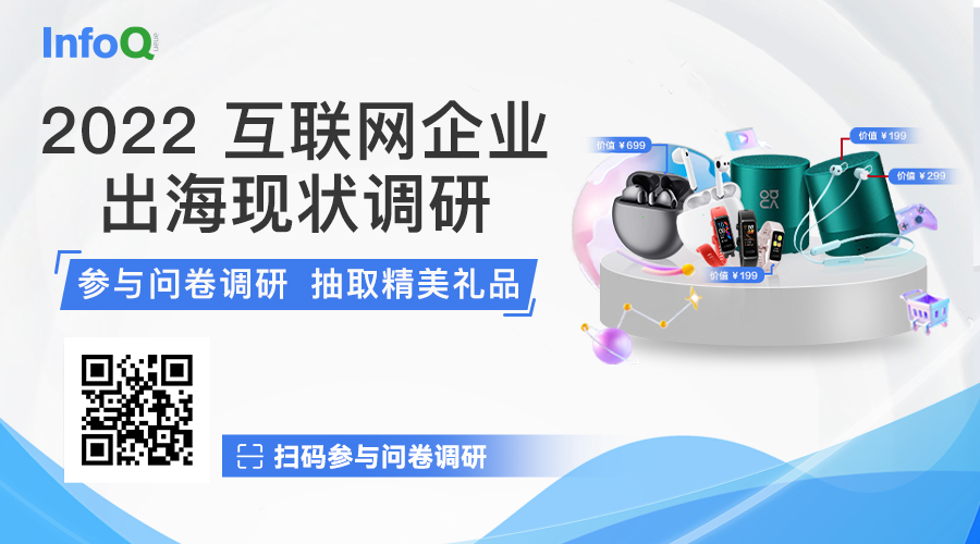 为了解互联网企业出海现状,InfoQ 发起问卷调研。1 分钟填写问卷,千元大奖等你拿:华为 FreeBuds 4E 无线蓝牙耳机、华为 FreeLace 无线耳机、华为手环 4、华为 mini 蓝牙音响...... 扫描二维码或点击阅读原文,马上抽奖!