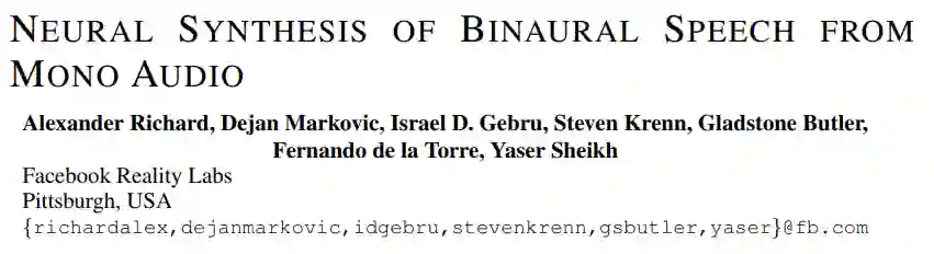 论文 5:Neural Synthesis of Binaural Speech from Mono Audio