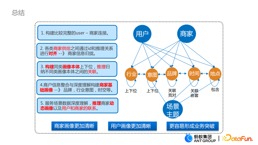 过去一年我们一直在做商家图谱的建设以及数据沉淀,沉淀下来的数据也希望可以开源开放,为社区做一些贡献。我们主要完成商家和用户的连接,并进一步做了概念层面的建设,目的是期望商家和用户的画像更加清晰,能基于商家图谱可以在业务上有更多的突破。目前沉淀下来的实体规模有30亿+,关系链有400亿+。同时我们也计划将沉淀下来的数据和能力逐步开放出来,并提供一些开源的算子。