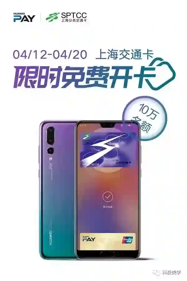 4月14日,为迎接华为P20系列机型加入Huawei Pay家族,Huawei Pay携手上海交通卡公司开展免开卡费活动,即日起至4月20日,在华为钱包开通Huawei Pay上海公交卡,即可免收27元开卡服务费,共10万名额,先到先得。