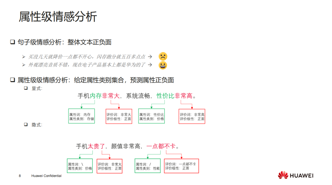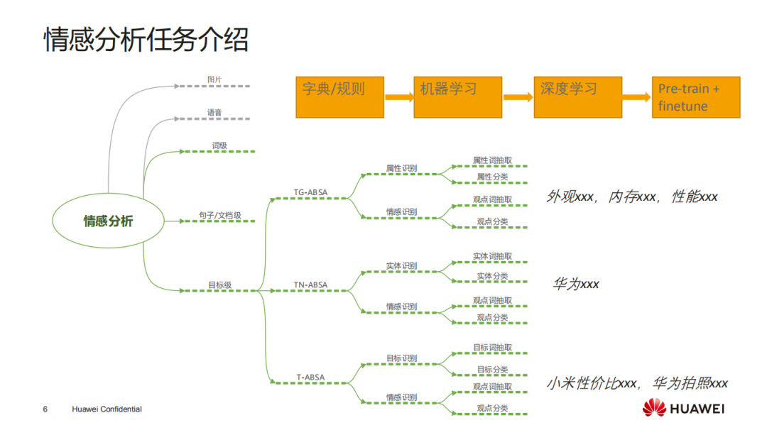 导读:随着移动互联网的普及,网络上每天产生大量的文本数据,蕴含着巨大的有价值信息。情感分析作为自然语言处理中的一个重要研究方向。在实践中有着广泛的应用,如商品评论分析、政治、金融、旅游等领域中的商品推荐、产品辅助决策、公司政府的舆情监测、服务评价等等。本文主要介绍情感分析的概念、应用、任务和方法,进一步会介绍华为云在细粒度情感分析方面的实践,包括属性级情感分析和观点四元组分析。