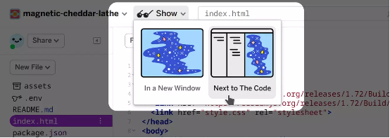 点击上方的 Show,再选择 Next to The Code 运行应用。
