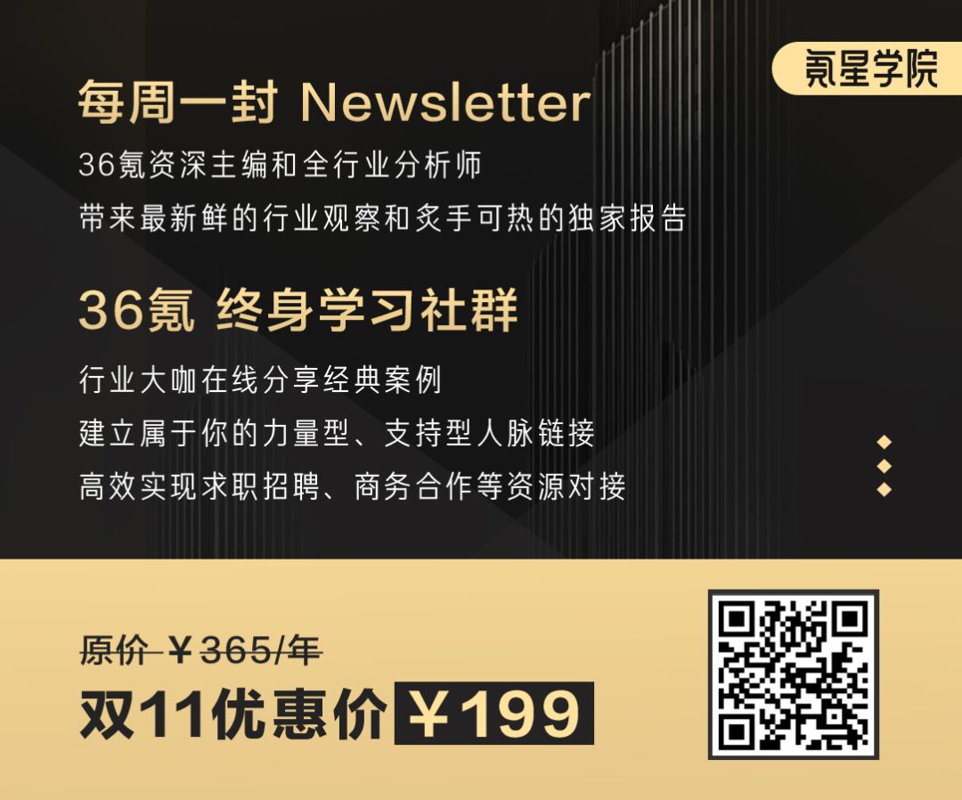 简单地说,就是:每周一封Newsletter + 36氪终身社群。