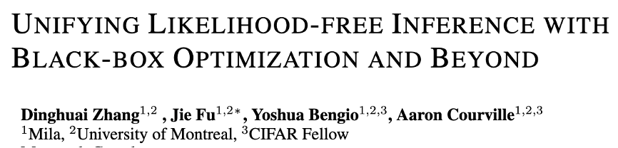 付杰与其他合作者的另一篇论文“Unifying Likelihood-free Inference with Black-box Sequence Design and Beyond”被ICLR 2022接收。这项工作构建了一个概率框架,将无似然推理(Likelihood-free Inference)和黑盒序列设计(Black-box Sequence Design)进行统一,并提出在该框架下构建各种序列设计方法的方案,从而对以往的药物发现方法实现了改进。
