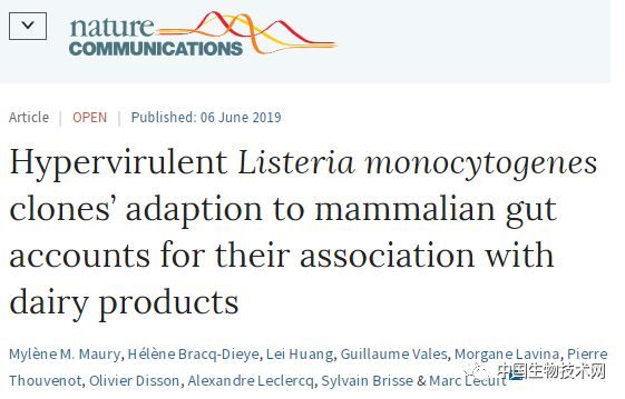 近期,在《Nature communications》上发表了一篇名为《Hypervirulent Listeria monocytogenes clones’ adaption to mammalian gut accounts for their association with dairy products》的文章。