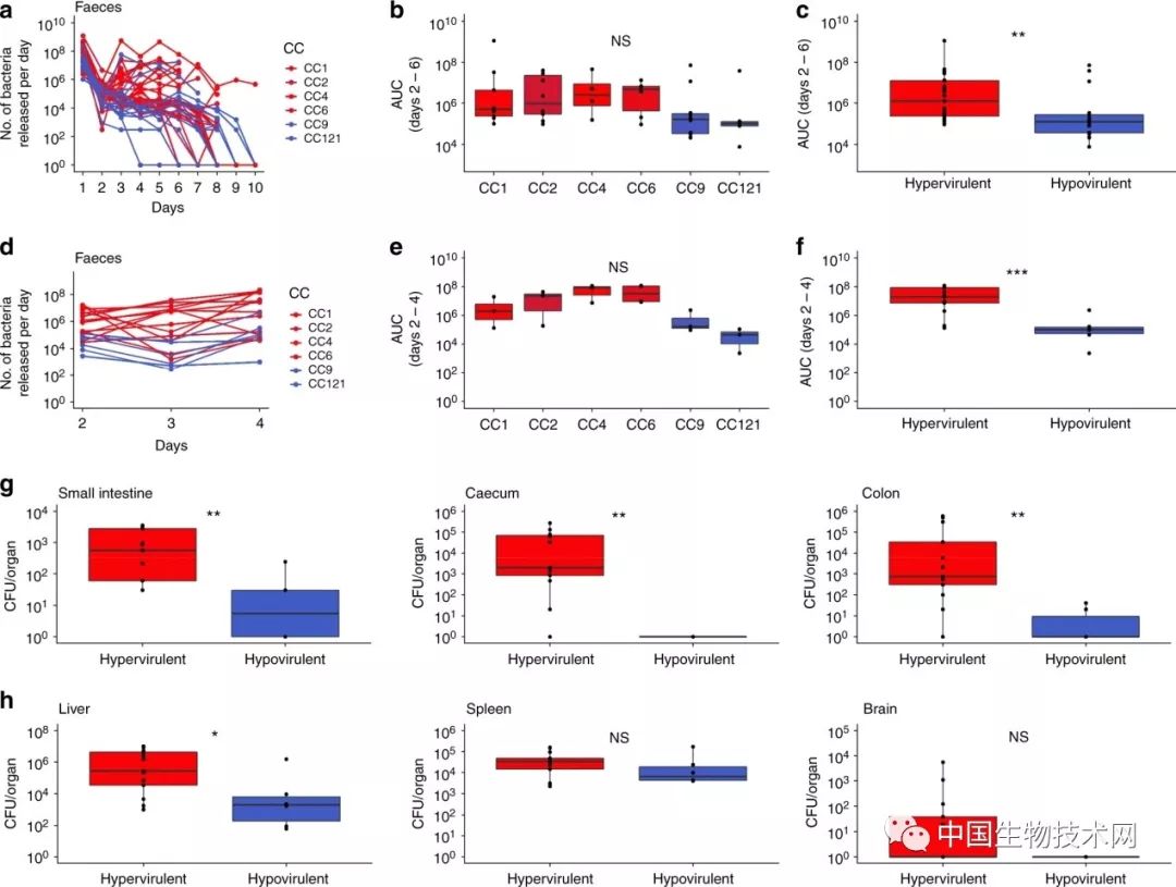 4、高毒克隆CC1,CC2,CC4和CC6能更有效地穿过肠屏障,并且一部分细菌可以在肠腔中脱落,带来更高的肠道定植。粪便脱落,在环境中释放Lm,最终有利于菌株在宿主间传播。