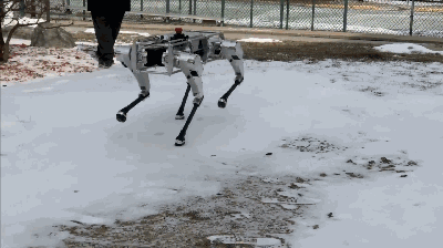 最近,研究人员又发布消息,惊喜地表示,Vision 60能够在湿滑的雪地上行走了!虽然要将速度放慢一些,但这已经是一个不小的突破了。