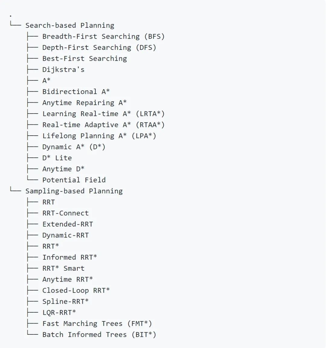 该开源库中实现的路径规划算法包括基于搜索和基于采样的规划算法,具体目录如下图所示: