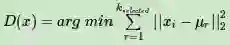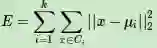 如果用数据表达式表示,假设簇划分为(C1,C2,...Ck),则我们的目标是最小化平方误差E: