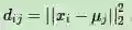 b) 对于i=1,2...m,计算样本xi和各个质心向量μj (j=1,2,...k)的距离: