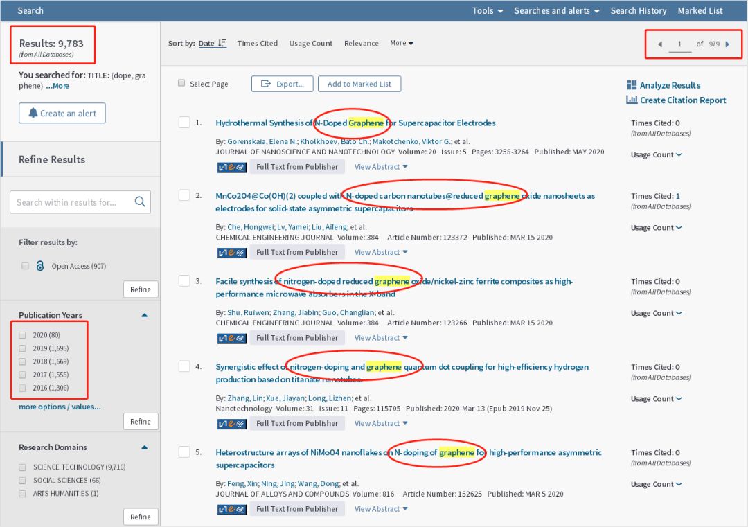 为了看一下这个石墨烯掺杂到底有多火,本人特地在Web of Science上进行了查询,以dope,graphene为关键词查询标题带有这两个词的就有9783个,2019年发表1695篇,18年1669篇,17年1555篇,16年1306篇,数目随着时间还是增长的,相信这个趋势还会保持!