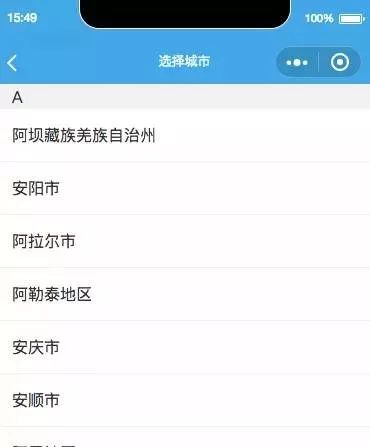 点击相应的城市,跳转到首页获取所选城市的天气数据。这里的城市数据是这样的格式无序的列表:
