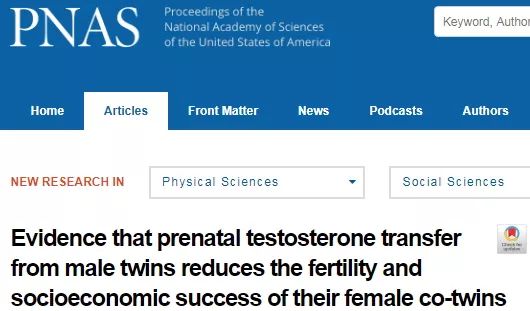 3月18日,《PNAS》期刊上发表了一篇文章,针对“异卵双胞胎中的龙凤胎”给出了一份有意思的研究成果。