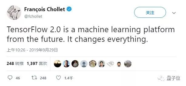 Google深度学习科学家、Keras作者François Chollet热情的表示:“TensorFlow 2.0是一个来自未来的机器学习平台,它改变了一切”。