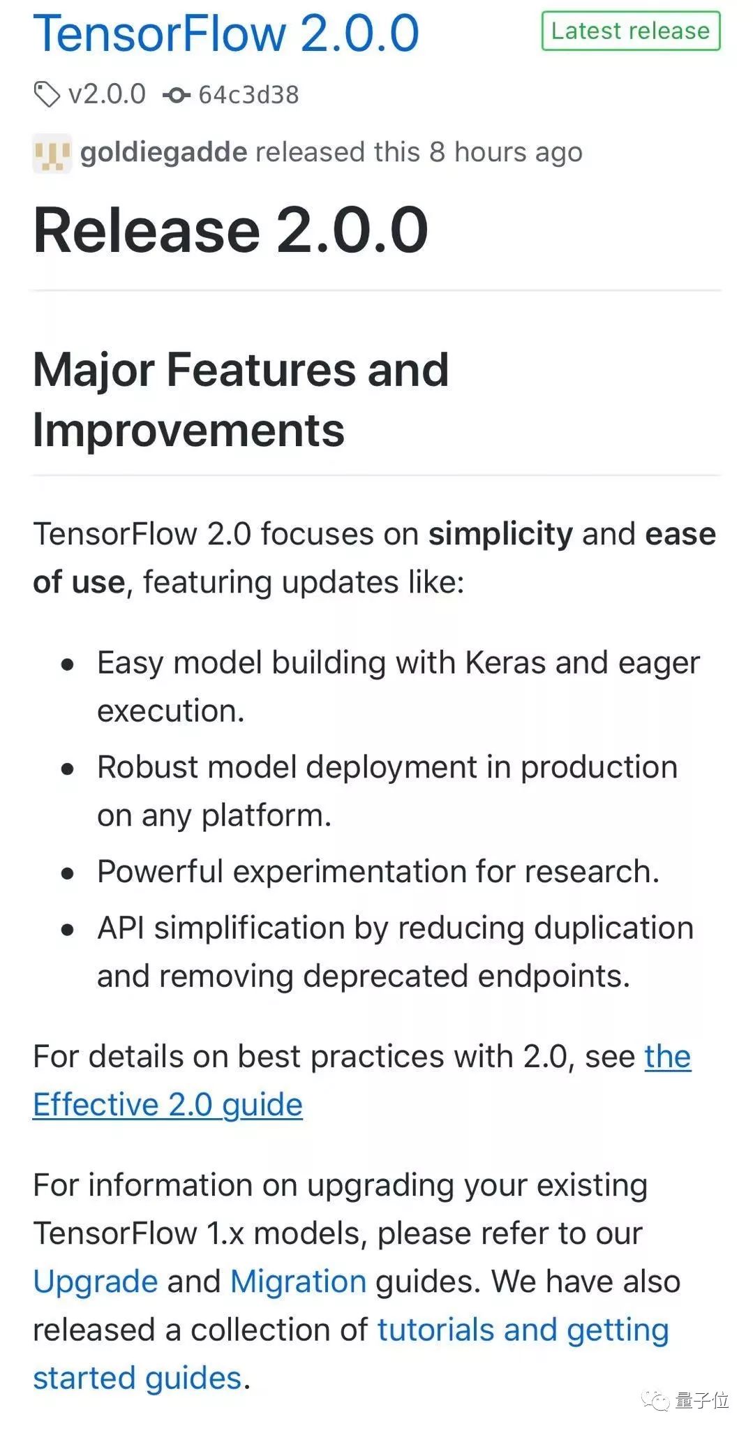 七、官方提供了TensorFlow 1.x升级2.0的迁移指南,TF2.0还有一个自动转换的脚本。