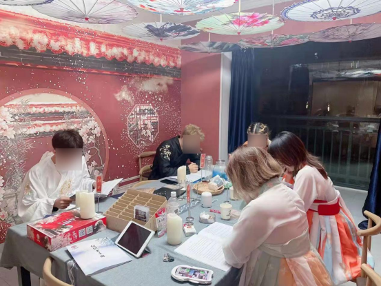 后来,我们的剧本杀店开在了居民楼里,主要面向附近的学生,有8个房间。租金一年8万多,我们直接付了一年的租金。装修上也投入了不少,我们需要根据场景重新装饰,壁纸、桌椅、装饰、人工费,算下来也有2万多。此外就是剧本支出,我们第一次在剧本上的投入就有2万多。