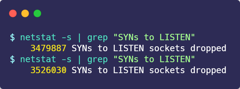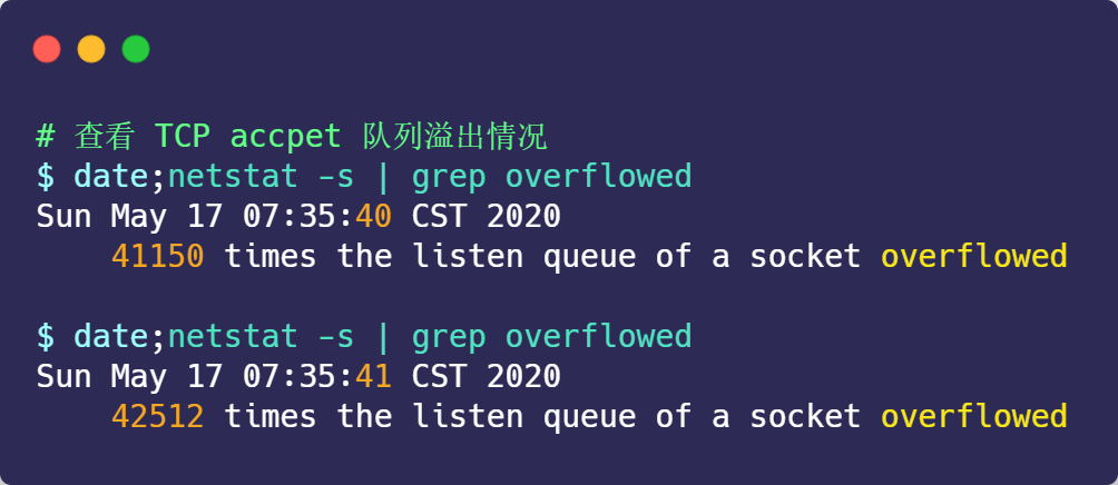 如何查看由于 accept 连接队列已满,而被丢弃的连接?