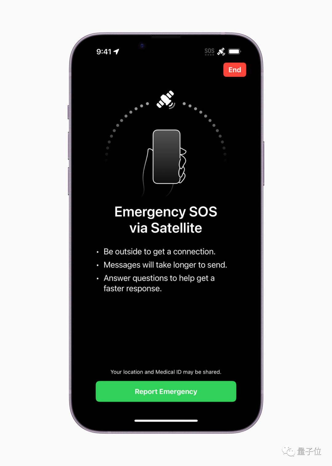 除了紧急联系,也可以用于在没有蜂窝网络信号的时候共享位置,大约15分钟更新一次。