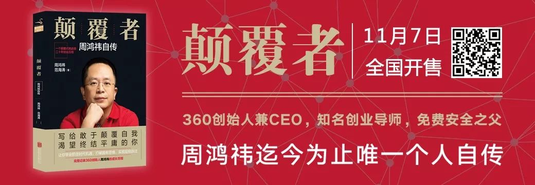 ↙↙扫描海报二维码或点击阅读原文,即可购买《颠覆者:周鸿祎自传》