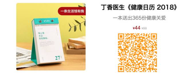 现在,丁香医生《健康日历 2018》在一条生活馆开售。原价88元,一条生活馆特惠价44元。