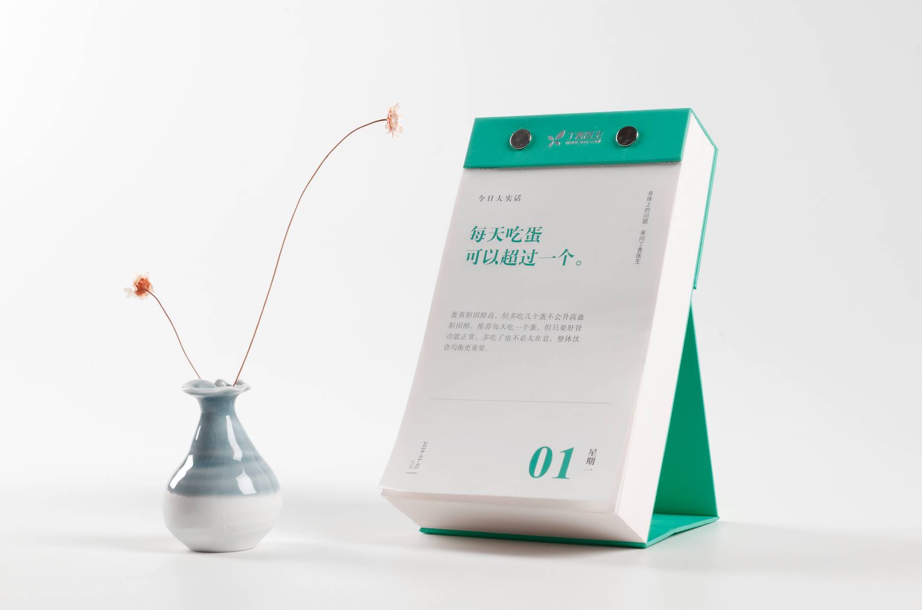 日历的主色调是代表健康的绿色,内封皮覆了一层触感膜,摸上去非常舒服。 外封套是为了保护日历在运输途中不受损。