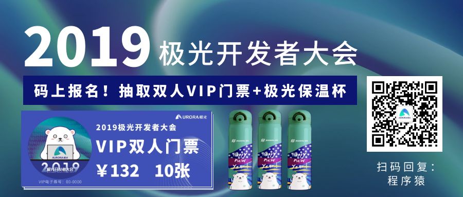 说好的文末豪礼来啦,关注极光微信公众号并在后台回复“程序猿”,立即参与抽奖!极光将抽取 10 位幸运儿,每位幸运儿将获得极光开发者大会VIP双人门票 1 张和极光定制保温杯 2 个,心动不如行动,快快与其他小伙伴分享这个惊喜吧!