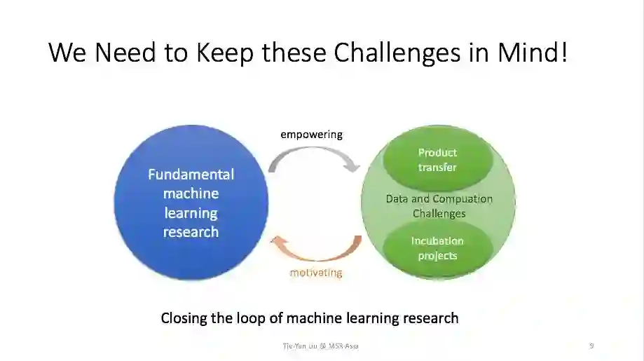 我想通过这五个实际案例向大家展示,如果我们在做人工智能、机器学习研究时,有针对性地去解决现实中的痛点问题,从中发掘关键的挑战,找到技术的难点,那么我们的研究将有机会对现实世界产生非常巨大的影响。所以,从事机器学习的研究,不能闭门造车,要从实践中来,到实践中去,形成研究的闭环。