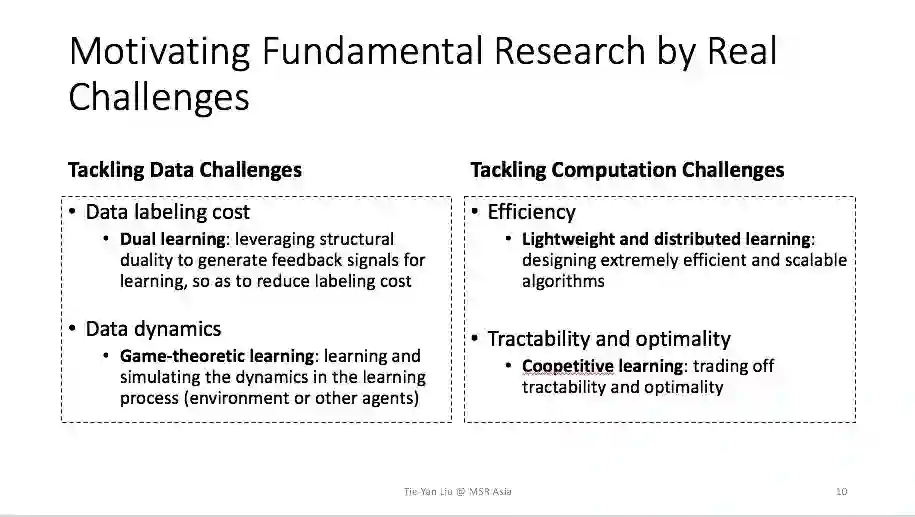 对偶学习之所以有效,是因为两个对偶任务背后有着非常强的概率联系——它们的机器学习模型分别对应于联合概率的两种不同的展开方式。正因为这种联系,两个机器学习模型可以互相帮助,使对偶任务的学习更出色。目前,我们已经对对偶学习在有监督、无监督、推断、迁移学习、多智能体学习等各个层面上进行了深入的研究,在学术界产生了一定的反响,很多学者开始将对偶学习的思路应用在他们的目标问题中。