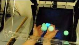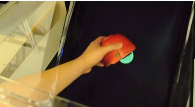 比如这里有一个虚拟小球,我们手持小碗遮住了它的一部分,所以它只露出了一半。