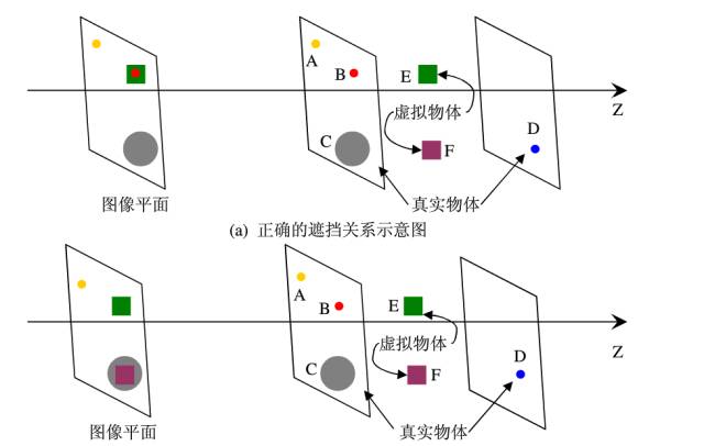 基于三维建模的办法:充分采集环境的信息,包括深度、大小形状等,然后对真实物体进行三维建模,求得这个物体在真实世界中坐标系下的三维坐标,然后判断和虚拟物体的位置关系来得到遮挡关系。