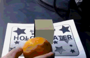 小方块是一个虚拟物体,可以观察到,它可以很完美地被我们手持的柠檬遮挡。
