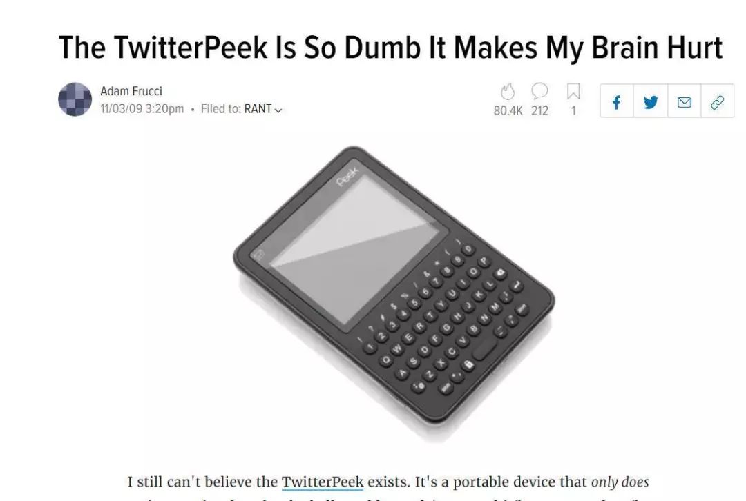 让我们来看下当时 GIZMODO 的报道,简单翻译就是——TwitterPeek 傻 X 到让老子脑壳疼!