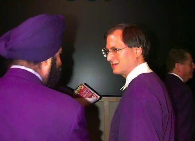 以下这张是 1996 年乔布斯出现在阔别苹果 10 年之久的会议室,在场的 Tim Holmes 用 QuickTake 所拍,30 万像素,画质怎么样,其实他们穿的是黑色的衣服,却变成了紫色……