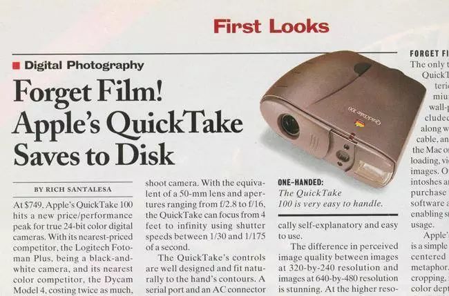 1994 年,苹果找柯达设计和制造了 QuickTake100 数码相机,被誉为“世界上第一批消费数码相机之一”。