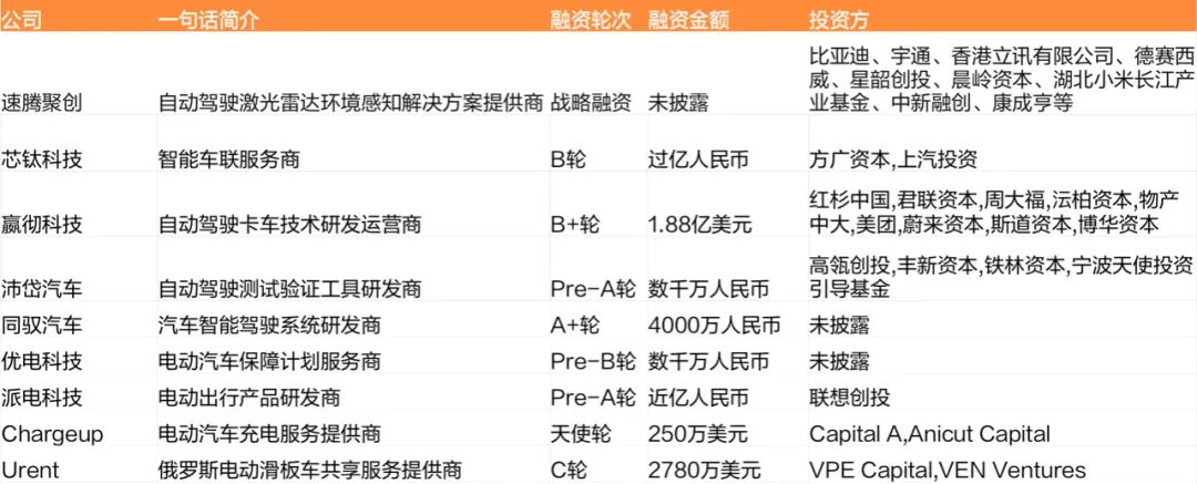 本周全球汽车交通领域融资事件共9起,其中国内7起,国外2起。据睿兽分析不完全统计,本周国内汽车交通融资金额总计超12亿元人民币,海外融资金额总计超3000万美元。
