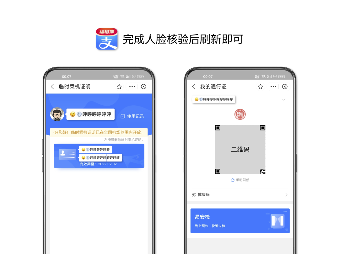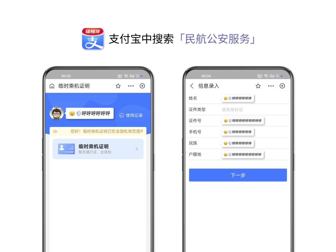 而搭乘飞机的乘客,可通过民航公安于 2019 年正式上线的「民航临时乘机证明」小程序办理「电子临时乘机证明」,在值机与安检时使用。
