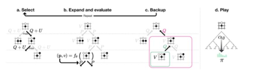 在不断的推演复盘再推演的过程中,行棋会不断的优化。经过一段时间优化,推演的落子概率就是一个更加好的策略。MCTS的输出