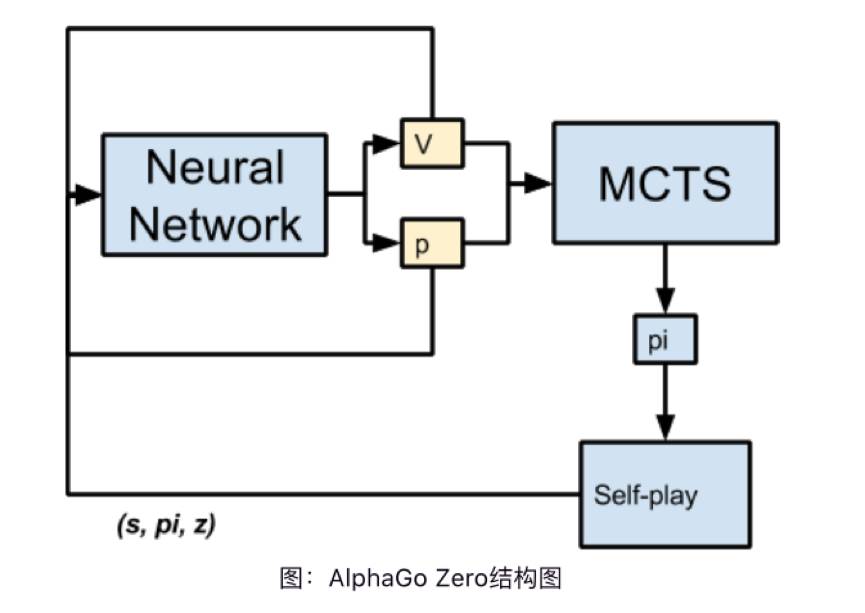 AlphaGo Zero在此基础上又进一步改进。将两个网络融合称为一个神经网络。对于每一个可能的棋盘布局s,这个神经网络输出如下两个结果: